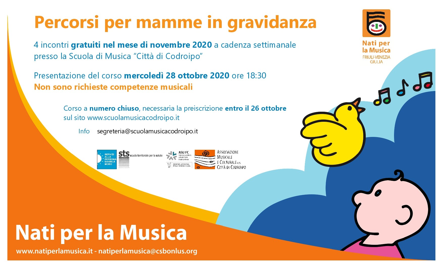 Per informazioni: segreteria@scuolamusicacodroipo.it