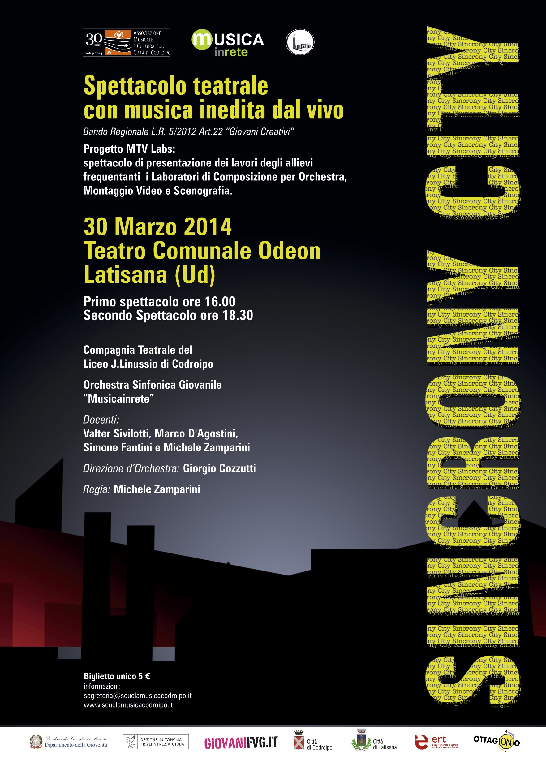 30 MARZO teatro Latisana: SINCRONY CITY Spettacolo teatrale con musica inedita dal vivo – progetto MTV Labs