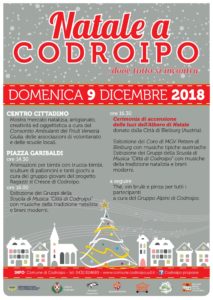 Domenica 9 dicembre dalle ore 16 il gruppo ottoni, il gruppo fiati e l’orchestra propedeutica creeranno la giusta atmosfera per il magico momento dell’accensione dell’albero di Natale, in piazza Garibaldi davanti al municipio. Accensione prevista per le 16.30. Evento organizzato dal Comune di Codroipo.