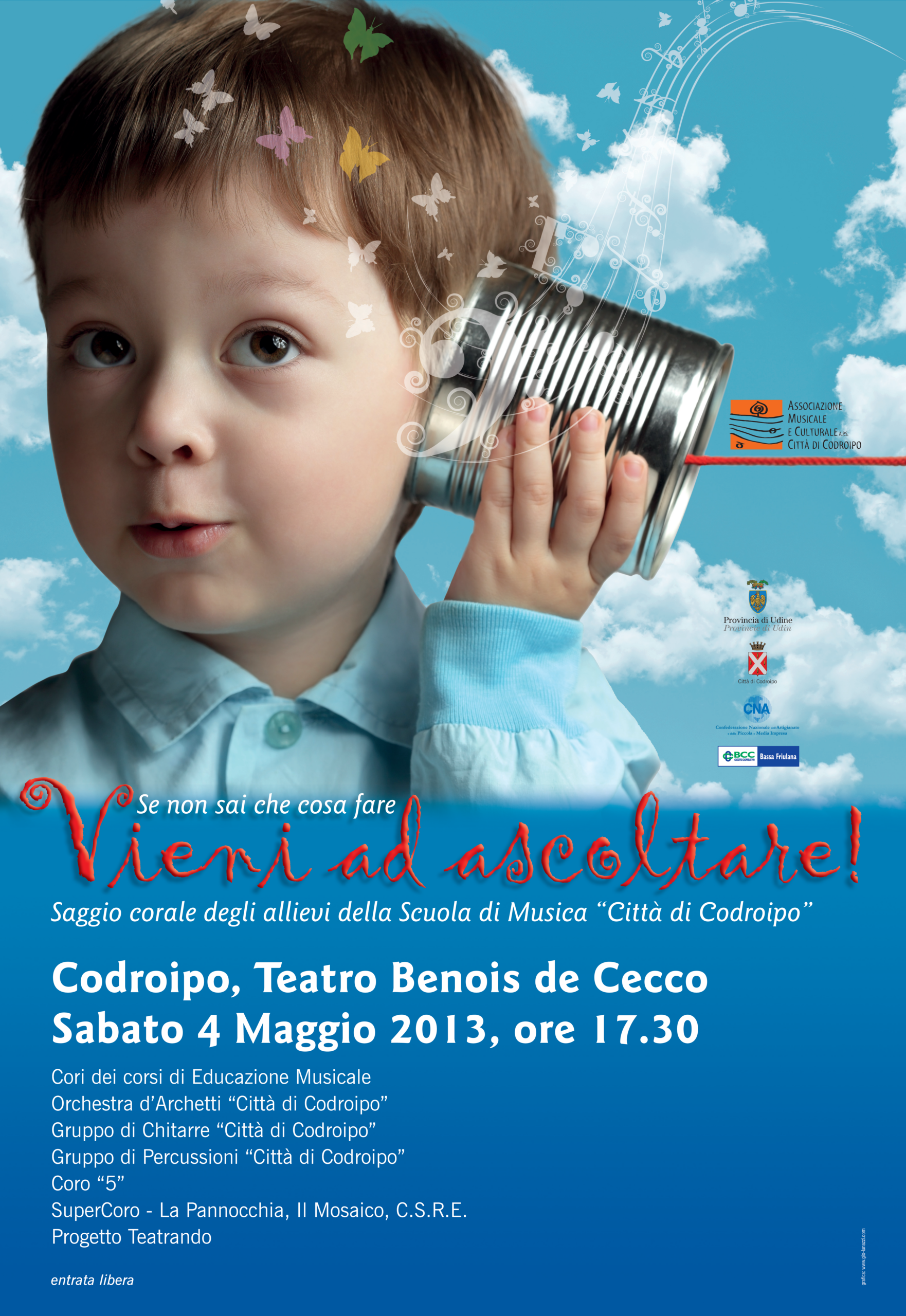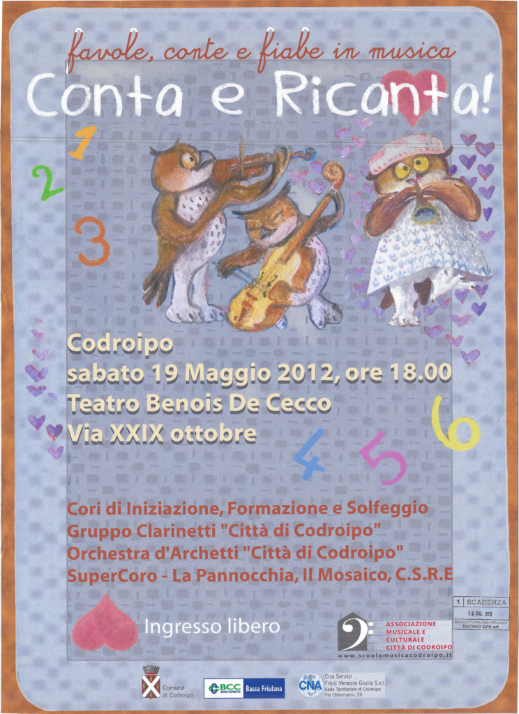 L’Associazione che si occupa da oltre venticinque anni di formazione musicale e organizzazione di concerti, gestisce la Scuola di Musica “Città di Codroipo”. La Scuola è strutturata secondo due percorsi di studi: libero (secondo le esigenze dell’allievo amatoriale) e ministeriale (secondo i programmi di studio conservatoriali e/o professionali) in linea con la nuova riforma dei programmi in corso. Vengono organizzati corsi di formazione musicale, dalla base (a partire dai 6 mesi d’età con il metodo Gordon e dai 3 anni di età con il metodo Willems) fino a raggiungere l’alta formazione e la preparazione degli allievi al confronto con gli istituti musicali superiori e l’università musicale. Nata come Scuola di musica classica, si caratterizza dal 2006 per i suoi quattro dipartimenti educazione musicale, classica, pop-rock e jazz estendendo il suo campo d’azione e interessando un numero crescente di persone. Vengono organizzati corsi strumentali individuali e corsi di gruppo a seconda della disciplina oltre che seminari con docenti di rilievo nazionale ed internazionale per le varie aree di competenza. La scuola è attualmente diretta dal M° Giorgio Cozzutti L’associazione è attualmente presieduta da Mario Pivetta E’ possibile contattare la Scuola, che si trova a Codroipo in via IV Novembre n°35, ai…