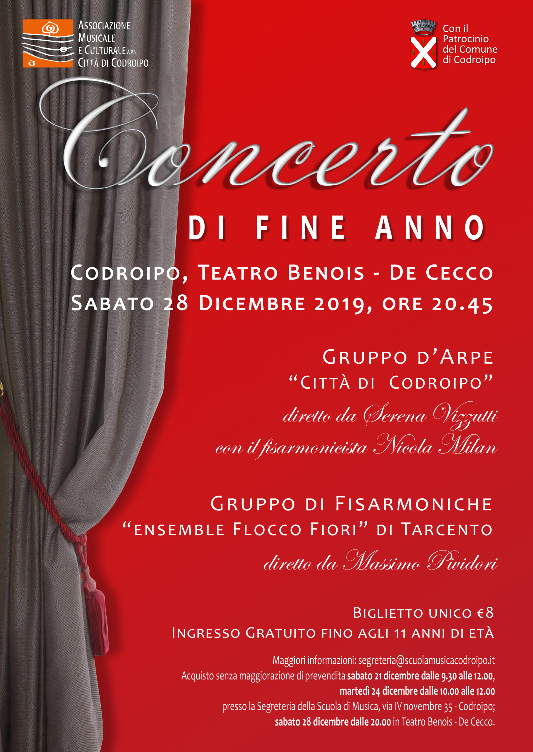 L’Associazione che si occupa da oltre venticinque anni di formazione musicale e organizzazione di concerti, gestisce la Scuola di Musica “Città di Codroipo”. La Scuola è strutturata secondo due percorsi di studi: libero (secondo le esigenze dell’allievo amatoriale) e ministeriale (secondo i programmi di studio conservatoriali e/o professionali) in linea con la nuova riforma dei programmi in corso. Vengono organizzati corsi di formazione musicale, dalla base (a partire dai 6 mesi d’età con il metodo Gordon e dai 3 anni di età con il metodo Willems) fino a raggiungere l’alta formazione e la preparazione degli allievi al confronto con gli istituti musicali superiori e l’università musicale. Nata come Scuola di musica classica, si caratterizza dal 2006 per i suoi quattro dipartimenti educazione musicale, classica, pop-rock e jazz estendendo il suo campo d’azione e interessando un numero crescente di persone. Vengono organizzati corsi strumentali individuali e corsi di gruppo a seconda della disciplina oltre che seminari con docenti di rilievo nazionale ed internazionale per le varie aree di competenza. La scuola è attualmente diretta dal M° Giorgio Cozzutti L’associazione è attualmente presieduta da Mario Pivetta E’ possibile contattare la Scuola, che si trova a Codroipo in via IV Novembre n°35, ai…
