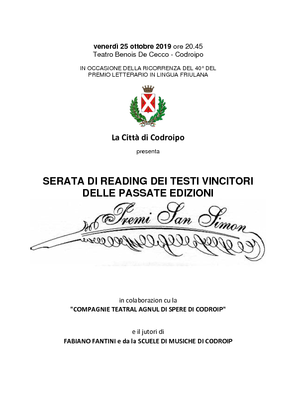 SERATA DI READING DEI TESTI VINCITORI DELLE PASSATE EDIZIONI