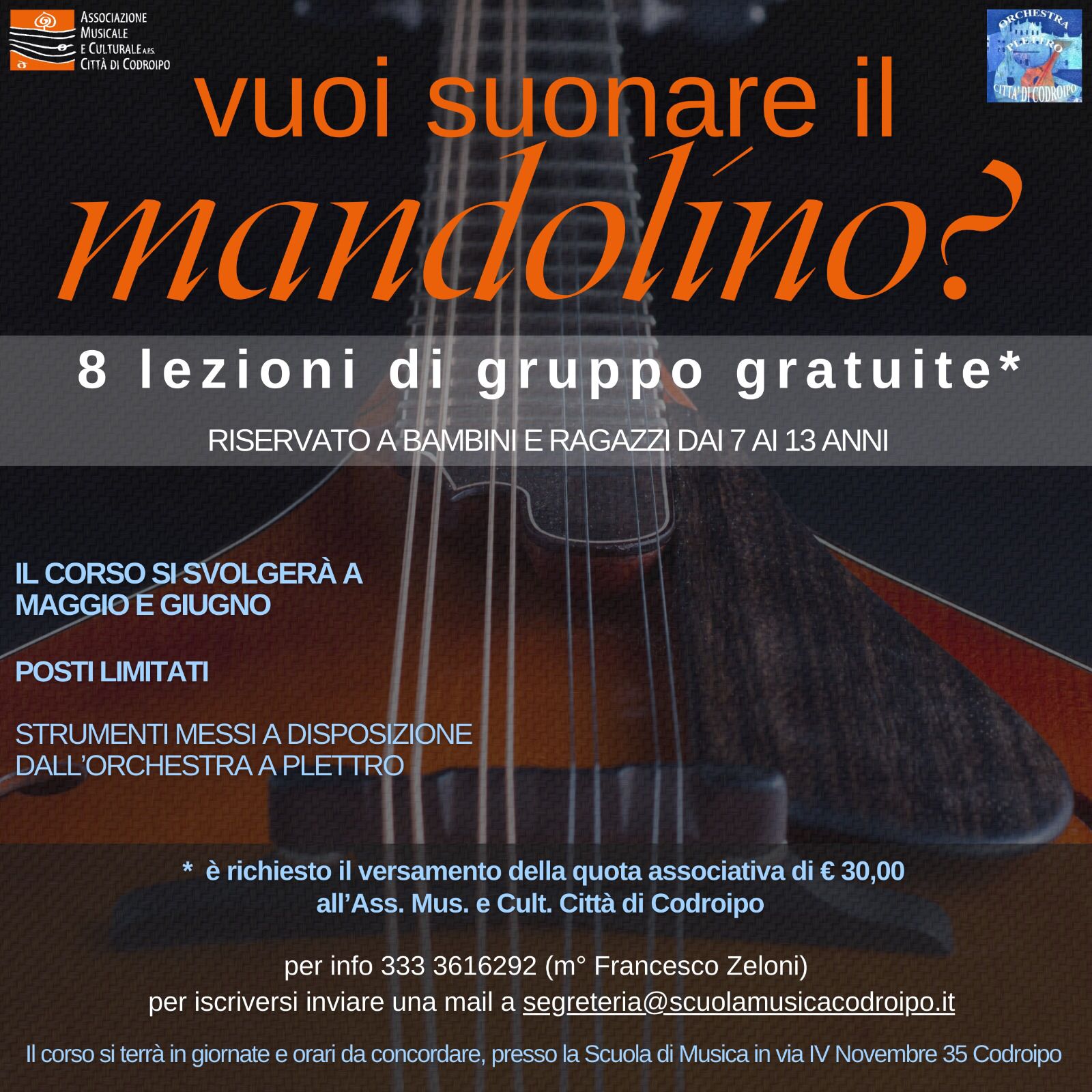 Iscrizioni: segreteria@scuolamusicacodroipo.it