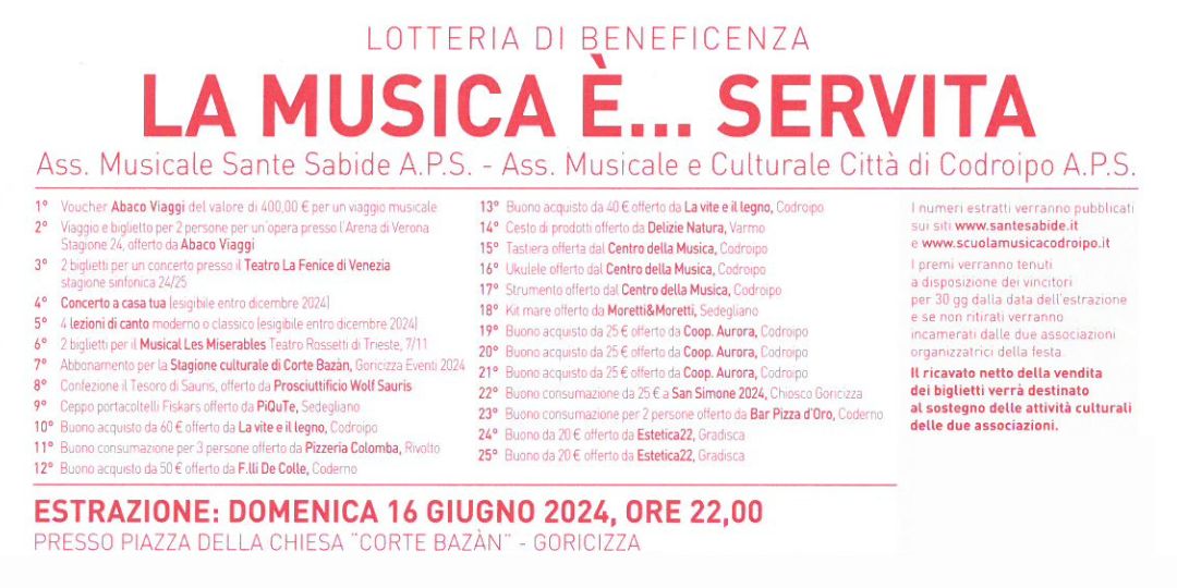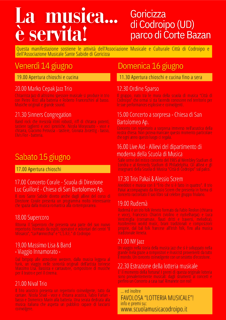 LA MUSICA… E’ SERVITA! 14, 15, 16 GIUGNO 2024