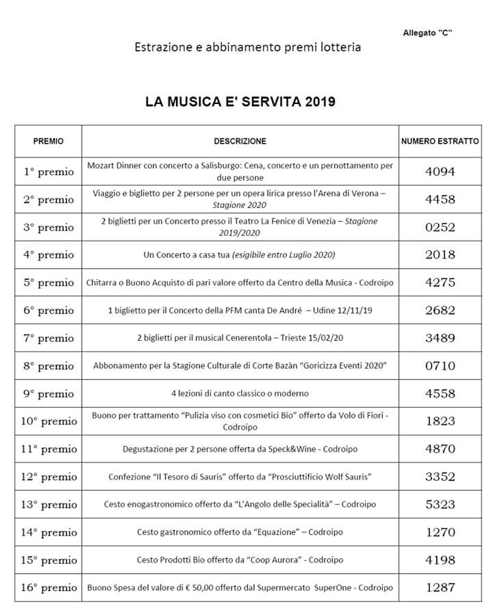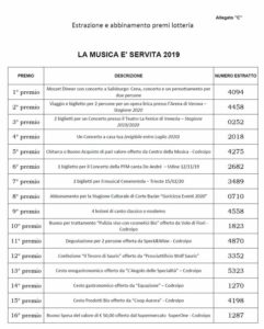 LOTTERIA LA MUSICA…E’ SERVITA 2019