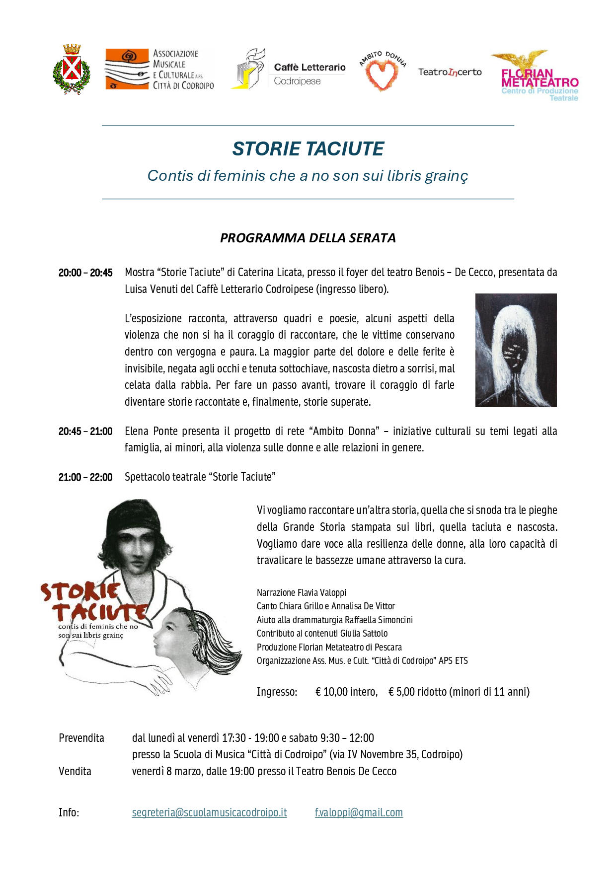 STORIE TACIUTE – Venerdì 8 marzo Teatro Benois-De Cecco