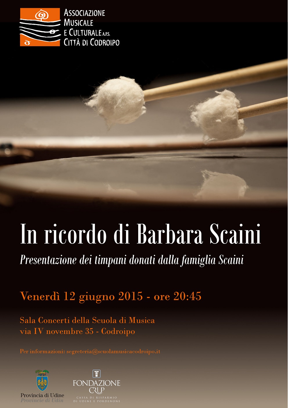 Venerdì 12 giugno ore 20.45: in ricordo di Barbara Scaini… presentazione dei timpani donati dalla famiglia.